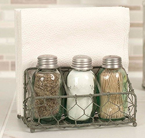 -. Title : Chicken Wire Salt Pepper and Napkin Caddy Green/Rust