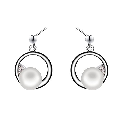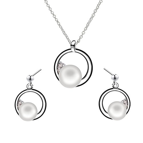 JIAEN Pearl Pendant Necklace&Dangling Earrings Sets(round)