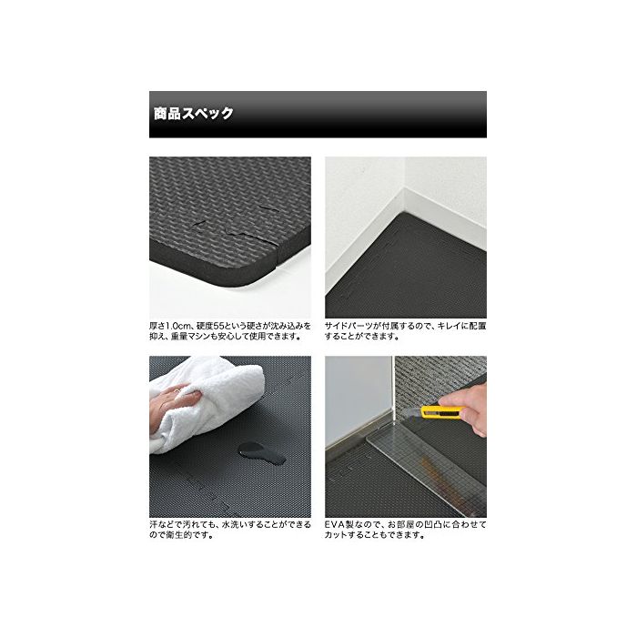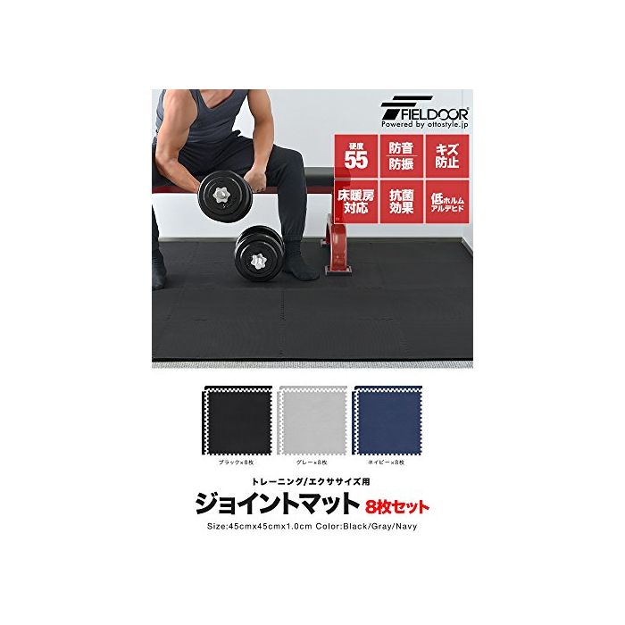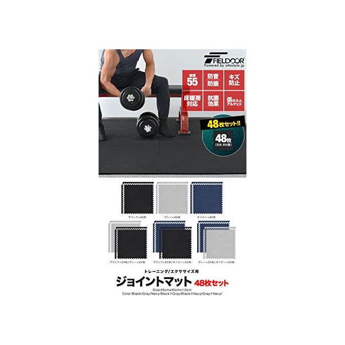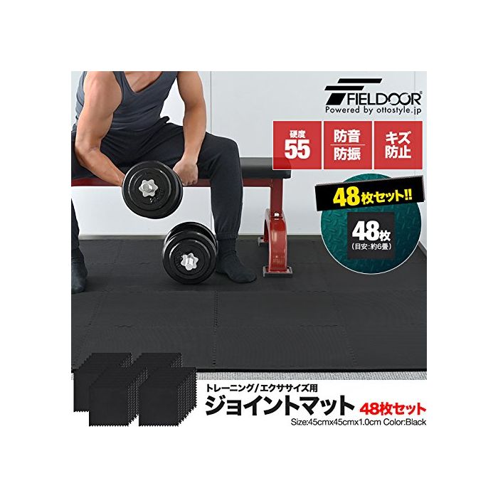 원본상품명: FIELDOOR トレ?ニング/エクササイズ用ジョイントマット 45×45×1.0cm 8枚/48枚 防音 キズ防止