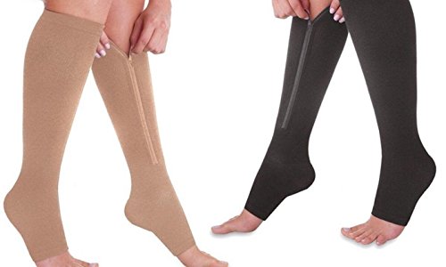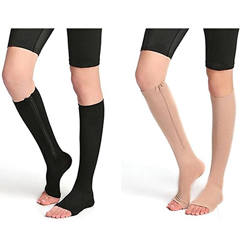 Bcurb Zippered Medical Compression Socks With Open Toe - Best Support Zipper Stocking for Varicose Veins, Edema, Swollen or Sore Legs - Helps Foot Feet Knee Ankle Arch