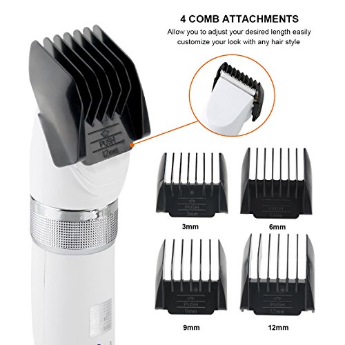 Five Adjustable Blade + Four Guide Combs: Use guide combs or adjust the blade when you need to control hair lengths. (0.8-1.1-1.4-1.7-2.0mm adjustable blade and 3-6-9-12mm combs for more styles) allow you to customize your look with any hairstyle you want