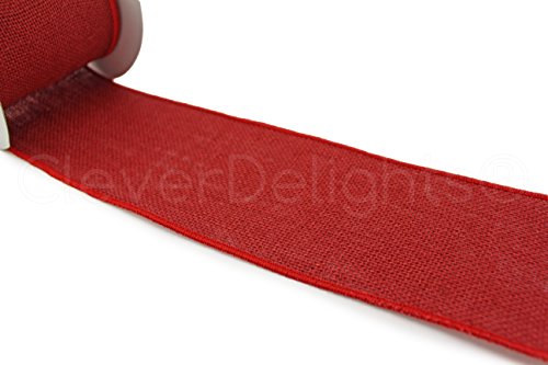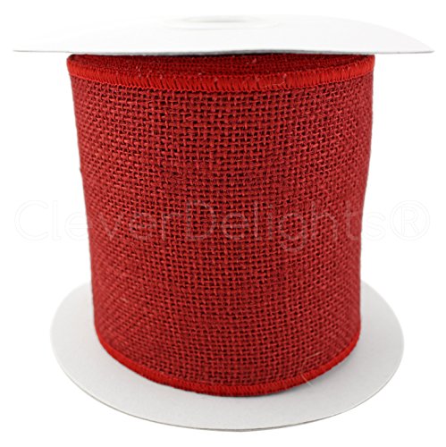 CleverDelights 4" Burlap Ribbon - Wired / Finished Edges - 10 Yards - Red Color - Super-Fine Weave