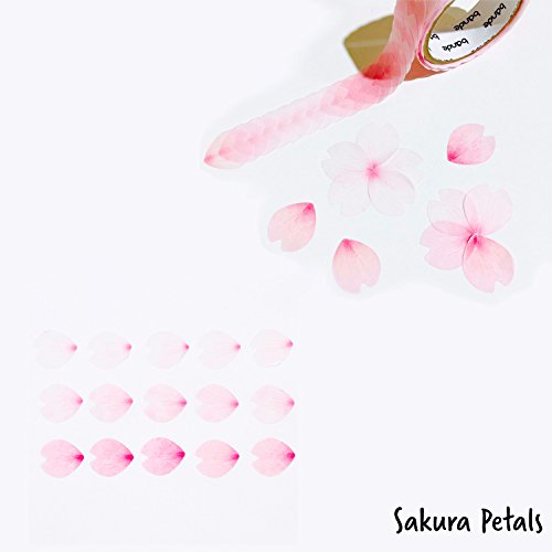 Bande Masking Tape Flowers Stickers bundle of 1 Sakura Petals Stickers (BDA218) and 1 Mini Petals Pink Stickers (BDA179) Bande Tape, with a Message Card, Sakura&Pink Petal