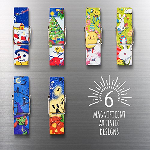- ✔ STUNNING HOLIDAY PRINTS - Add an artsy, colourful touch to your kitchen or office décor with the cutest decorative magnets! Decorate your fridge, locker or cubicle with colorful Christmas, Easter and Halloween prints and breathe new air into your room!