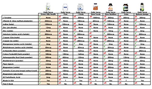 This comprehensive formula helps support healthy thyroid cell metabolism and thyroid hormone function. It supports clarity concentration and focus. This supplement is optimized for complete absorption, and is made in the USA to guarantee safety and purity Why we use these ingredients: Kelp Is the preferable form of iodine. Research shows it's more effective because its a natural food source. Kelp also contains other minerals. Selenium A necessary co-factor in production of thyroxine (T4), It also converts T4 to the more active form T3 Zinc Picolinate Is one of the most bio-available forms of Zinc. Needed for synthesis of thyroid hormones. Copper As Zinc lowers copper reserves, supplemental copper is recommended. It plays an important role in the metabolism of amino acid Tyrosine Molybdenum Is important in T3 release from the thyroid gland Magnesium glycinate Magnesium glycinate is one of the most bio-available and absorbable forms of magnesium. Manganese Required to transport the hormone thyroxine into our cells DOSAGE Take 3 Capsules each morning with Food WE NEVER USE L-Tyrosine Common side effects of this ingredient are headaches and nausea. Although it may raise Thyroid hormone production, the dosage you would need to achieve this can cause these side effects Magnesium oxide The most common form of magnesium, it is found in cheaper formulas. We avoid it as it has a poor absorption rate compared to our Magnesium Glycinate Green Hills Health Means Quality We use only Veggie Capsules and highest quality ingredients, in Bio-Available forms. No fillers,Artificial Flavors or Colors, No preservatives NO GLUTEN,Dairy Free 0 |