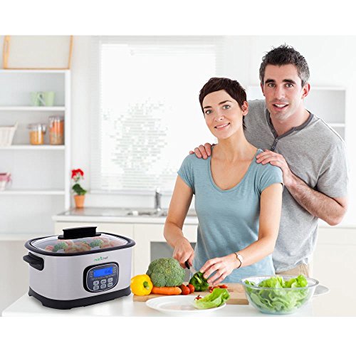 NutriChef’s slow cooker steamer is one of the best in the market. It features a 6.5 quart crock pt capacity and also has the sous vide cooking mode. Other than that, it also has built-in 11 preset cooking modes that will cater to all cooking needs. There’s also an alarm setting that will help for time efficient cooking. Features: - Energy Time Efficient Food Prep