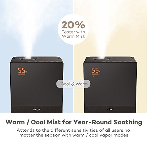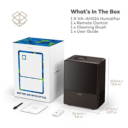 Studio : VAVA Publisher : VAVA Binding : Kitchen Product Description Warm / Cool Mist for Year-Round Soothing When it is dry and cold in winter, our noses do get a bit uncomfortable due to the cold air with low humidity; or in summer we may experience dry nostrils because of the heat. The warm mist of 36~38℃ not only diffuses 20% faster than the cool mist, but also moistens nasal passages better in winter. While in the dry summer heat, the cool mist perfectly relieves the dryness of your noses. Set Your Preferable Moisture Level Everybody is different when it comes to their needs in terms of the humidity level. The VAVA VA-AH014 Warm / Cool Mist Humidifier is equipped with a moisture sensor inside, monitoring and maintaining the humidity percentage in a room to allow you to set the desired humidity. If the current humidity is higher than your preset percentage, the device shuts off automatically, and vice versa. Personalized Timer Mist Volumes The integrated timer ranges from 1H to 9H at intervals of 1 hour each so you don't need to worry about forgetting to switch off the humidifier. The mist volume can be set to high / mid / low for a working time up to 10H / 15H / 22H in warm mist mode, or 13H / 14H / 30H of cool Sleep Mode, Zero Disturbance Enjoy a good night's rest with your desired humidity yet without any annoying sounds or lights thanks to the sleep mode of the VAVA Mist Humidifier. Only a small moon icon appears on the display panel while the device is operating whisper quietly. Safe with Low Water Protection Safety is a key concern of all electronic devices. But VAVA has you covered! When the water tank is lifted or the water dries out, the VAVA Humidifier switches off by itself for your personal security. There is no need to check on the water level of the tank from time to time, just chill out and breathe in the moistened air. What's In The Box 1 x Cool/Warm Mist Humidifier 1 x Remote Control 1 x Cleaning Brush 1 x User Guide 0