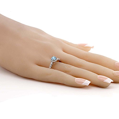 -. Title : 0.87 Ct Natural Round Aquamarine and White Created Sapphire 925 Sterling Silver Ladies Ring (Available in size 5, 6, 7, 8, 9)