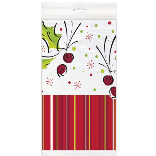 Holly Pop Holiday Plastic Tablecloth 84" x 54"