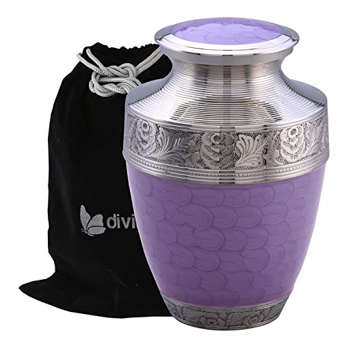 Eternal Peace Lavender Cremation Urn - Premium Quality Large Lavender Urn for Human Ashes - Solid Brass Handcrafted Purple Memorial Urn - Adult Funeral Urn with Velvet Bag