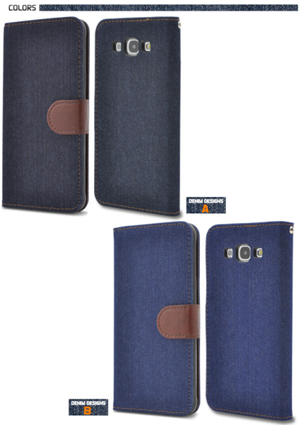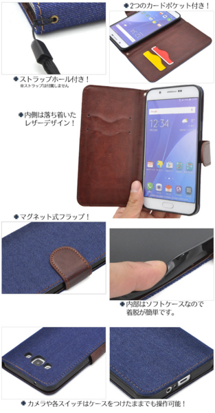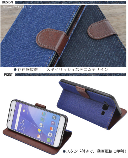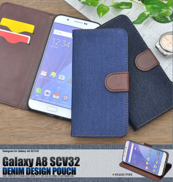 デニムデザインのGalaxy A8 SCV32用スタンドケースポーチ。