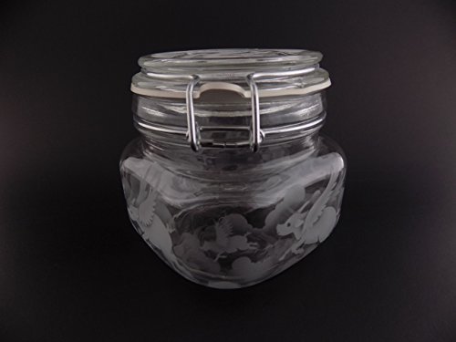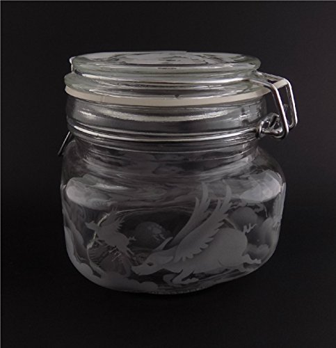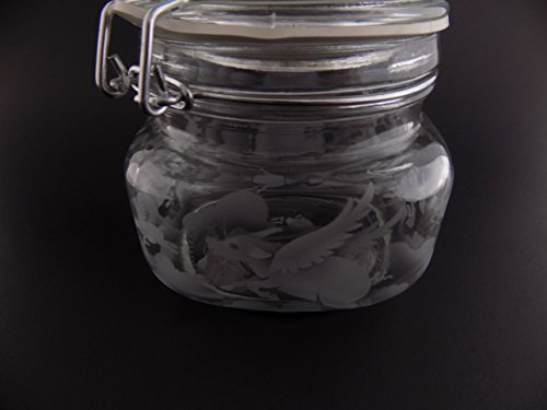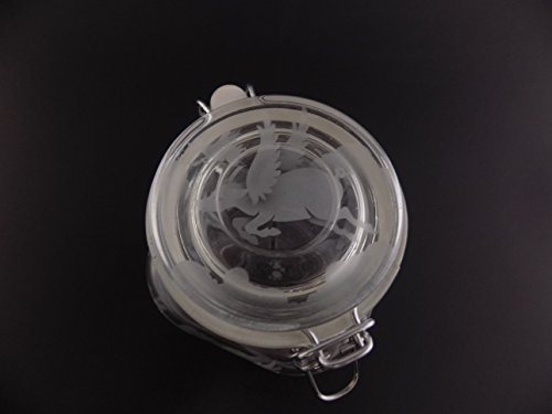 Hand Etched Glass Jar Airtight Anchor Hocking Heremes Canister Sandblasted (Sand Carved) Handmade Engraved Locking Wire Clamp Lid (16 Ounce, Pigs Flying Clouds)