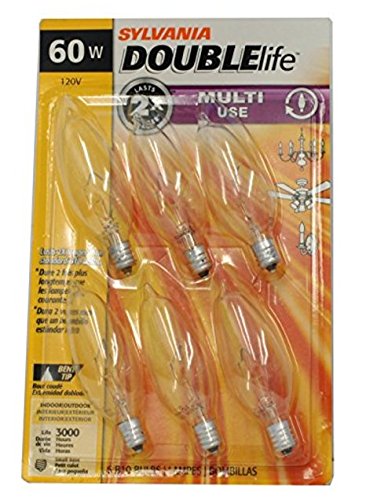 Sylvania Home Lighting 18750 B10 - 60W - Candelabra Base - Double Life Incandescent Light Bulb (6 Pack)