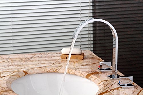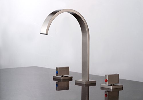 -. Title : GreensP.R.Ing Brushed Widespread 3pcs Bathroom Sink Faucet Double Knobs Basin Vanity Mixer Tap