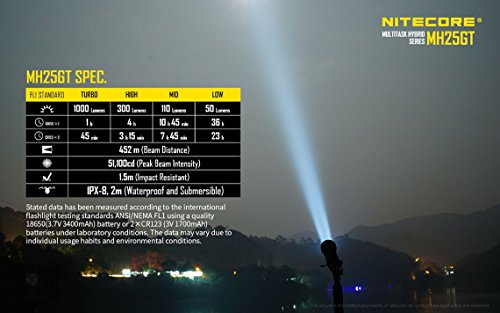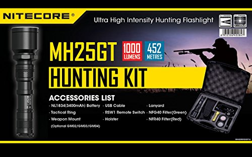 Nitecore MH25GT 1000 Lumens 494 Yards Rechargeable Hunting Light Kit for Hog, Coyote, Varmint and Predator Hunting