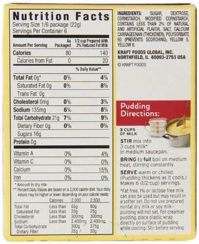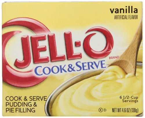 -. Binding : Grocery -. Brand : Jell-O -. EAN : 0043000206928 -. Feature : 4.6-ounce boxes / Delicious vanilla filling for pies like grandma made / Good source of calcium when made with milk / Cooks on the stovetop; just add milk / Made from the world's most popular dessert; over 300 million boxes sold every year -. Label : Kraft Foods -. Manufacturer : Kraft Foods -. Model : 0004300020692 -. MPN : 261-08-0050 -. PartNumber : 261-08-0050 -. ProductGroup : Grocery -. ProductTypeName : GROCERY -. Publisher : Kraft Foods -. Studio : Kraft Foods -. Title : Jell-O Cook & Serve Pudding & Pie Filling, Vanilla, 4.6 oz -. UPC : 492610800505