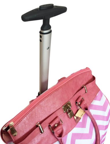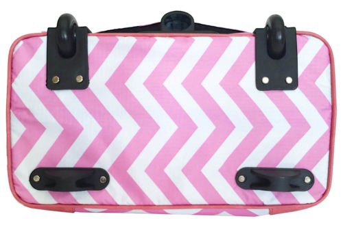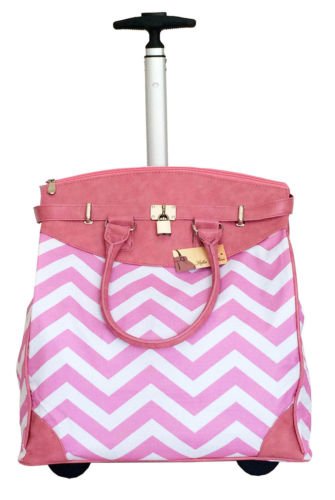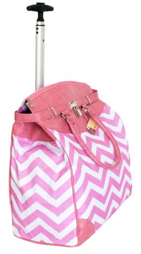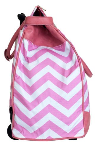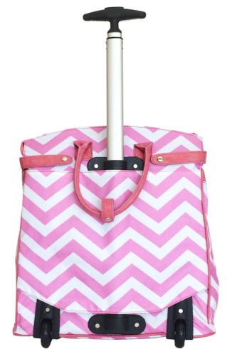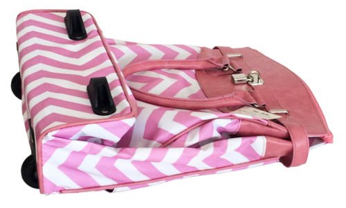 -. Binding : Electronics -. Brand : Trendy Flyer -. Color : Pink -. Department : laptop-computer-briefcases -. EAN : 0765857886701 -. Feature : Color: Pink, White and Black / Padded laptop area can fit laptop 12" wide, 12" tall and 2" thick using securing velcro strap. Padded laptop area can fit laptop 12" wide, 17" tall and 2" thick without using securing velcro strap. / Material: Polyester Canvas with Polyurethane Trim / Chevron / Zig-Zag / Size: 19" H x 17" L x 9" W / Weight: 4.5 lbs / Additional Info: Height From Top of Handle to Floor with Handle Fully Extended: 35" -. PackageQuantity : 1 -. ProductGroup : PC Accessory -. ProductTypeName : CARRYING_CASE_OR_BAG -. Title : Trendy Flyer Computer/Laptop Rolling Bag 2 Wheel Case Chevron Pink -. UPC : 765857886701