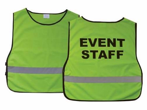 Safety Vest - Green Our safety vests are 100% polyester, in bright neon colors, with reflective stripe on front and back. Sixe XL fits most, with adjustable elastic side tabs with hook-and-loop closures.