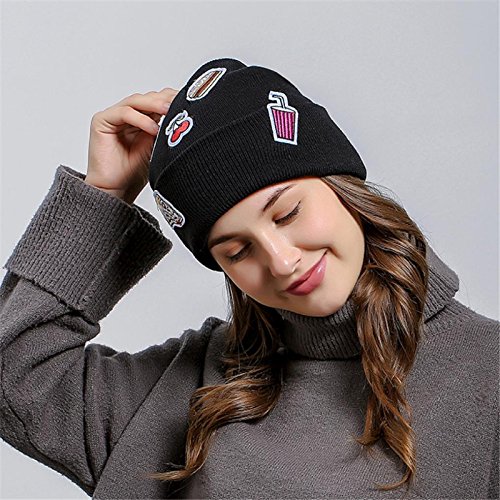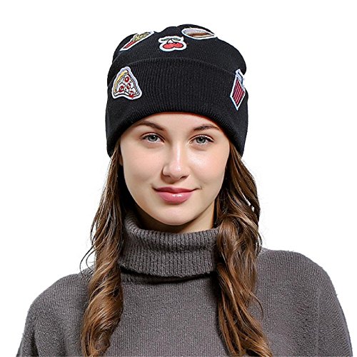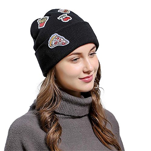 (Owill)/Accessories/Hats/DIRECT FROM USA/Owill Women Girls Ice Cream Patch Hamburger Chips Applique Baggy Knitted Beanie Hat For Your Wi...