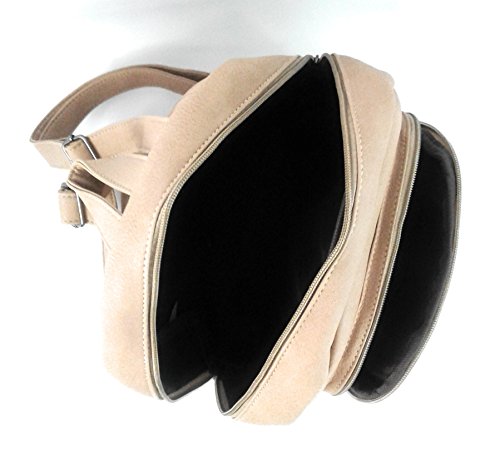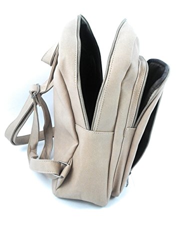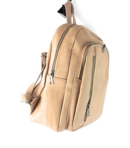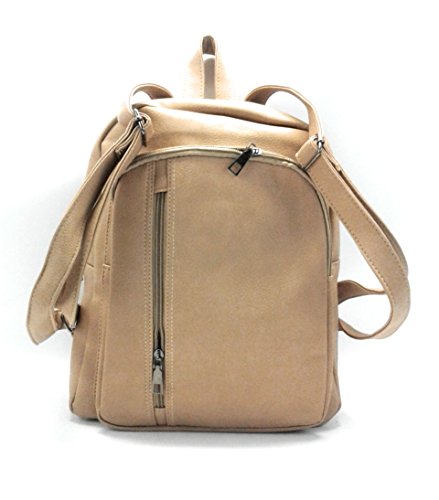 It's a Simple, cute and feminine type of small backpack purse. Modern design Ladies Backpacks and Travel multipurpose easy fit for shopping, promenade, and for shopping. This makes for a good backpack for an everyday use. Material & Pockets: Pockets: Inside:1 / outside:2). Interior pockets : One open pocket (Perfect for 10.1in tablet pc) and 1 interior zipper pocket. Exterior pockets : 2 Front zipper pockets. Adjustable straps to fit on back over shoulders. Outer material is soft high quality Faux Leather with zipper closure. High Quality nylon Lining on the inside. This is a fashion backpack purse, not a student backpack. This backpack is not large enough to hold a binder or laptop. But, it fits a 10.1 inch tablet PC. It's Simple, cute and feminine type of small bag. (13"H / 11"L / 5.5"W). Love how the bag is small but big enough for your mini IPad, wallet, phone, and all of your accessories. It's also so stylish. I definitely recommend this bag. Also, it would be perfect for a day diaper bag. The bag is very nice and is made of very sturdy Faux Leather. Also It is a great backpack/purse for your everyday casual life. BEIGE