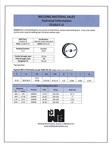 Blue Demon 316FC-O X .035 X 1LB Spool stainless steel flux core gasless welding wire
