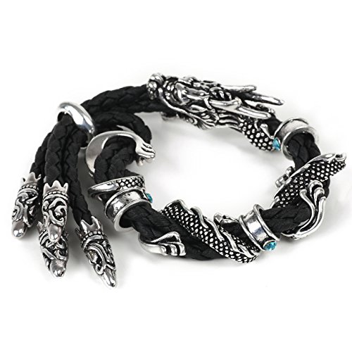 -. Title : R-STYLE 手元に存在感 ワイルドなドラゴンデザイン レザーブレスレット アクセサリークロス(布)セット