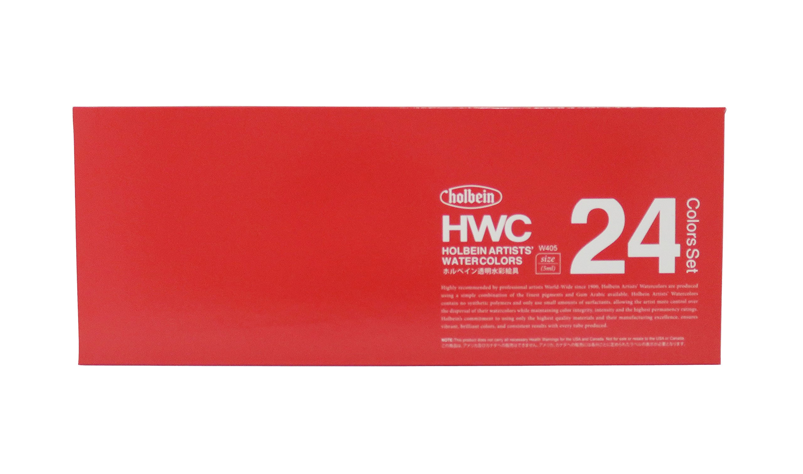 ホルベイン透明水彩絵具24色セット 容量:2号(5ml)※各色 [内容色] ・クリムソンレーキ ・ローズマダー ・バーミリオンヒュー ・ジョーンブリヤンNO.2 ・パーマネントイエローレモン ・パーマネントイエローディープ ・イエローグレー ・ビリジャンヒュー ・コバルトグリーン ・テールベルト ・パーマネントグリーンNo1 ・パーマネントグリーンNo2 ・コバルトブルーヒュー ・セルリアンブルー ・ウルトラマリンディープ ・コンポーズブルー ・プルシャンブルー ・ミネラルバイオレット ・イエローオーカー ・ライトレッド ・バーントアンバー ・バーントシェンナ ・アイボリブラック ・チャイニーズホワイト [特徴] 新鮮な色彩・強い着色力・強い耐光性・高い透明度を備え、加えて筆のノビの良い高級の品質を誇る専門家用の絵具です。 透明度を利用しての微妙な色の積み重ね、混色による巾広い色彩表現、紙とにじみの効果は透明水彩ならではの醍醐味です。