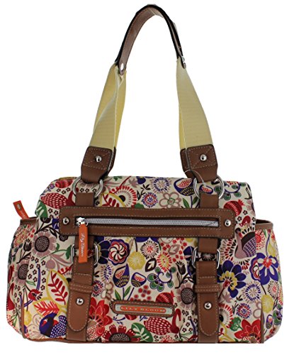 -. Brand : Lily Bloom -. Department : womens -. Feature : Top zip closure; Silver-tone hardware; Monogram brand name at front / Front zip pocket; Two side slip exterior pockets / Triple zip compartment with 1 inner zip pocket / Double handle with 9" drop / Dimension: 12" W x 9: H x 5" D -. Model : 21RPF84BS -. ProductGroup : Shoes -. ProductTypeName : HANDBAG -. Title : Lily Bloom Triple Section Landon Multi-Purpose Satchel Bag