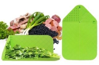 FROM PLASTIC CUTTING BOARD TO STRAINER: With a few simple folding operations this flexible cutting board integrates from cutting board to vegetable strainer, making it easier than ever to cut and rinse vegetable in the fastest manner