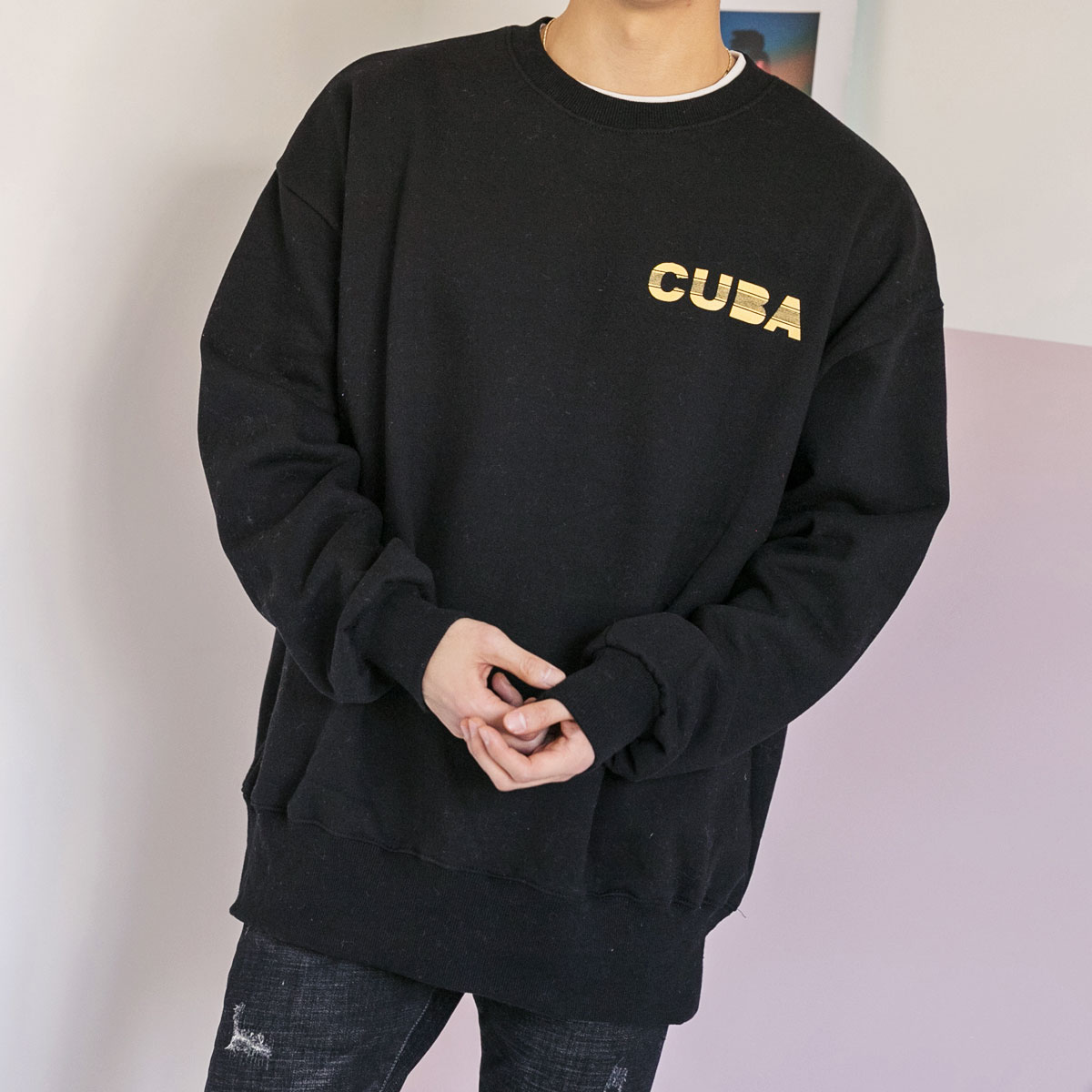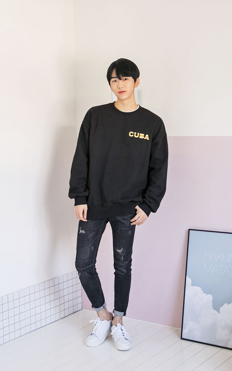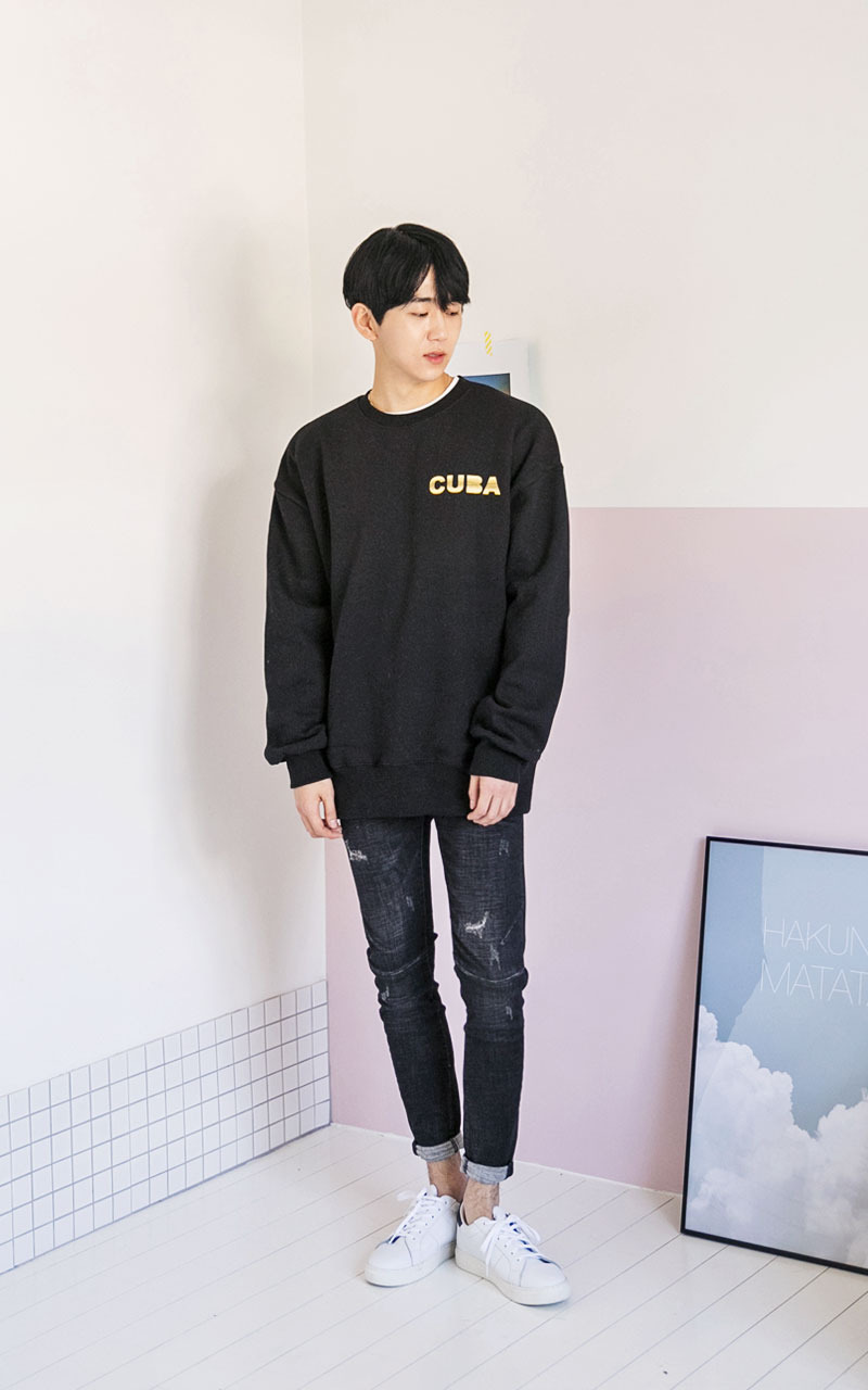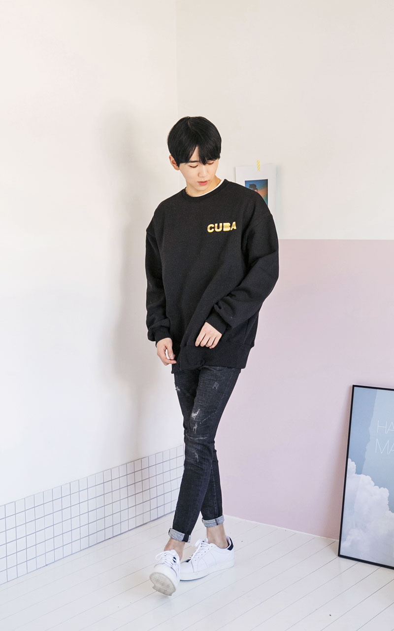 쿠바 기모 맨투맨티셔츠