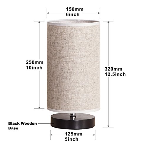 Lifeholder Table Lamp, Bedside Nightstand Lamp, Simple Desk Lamp, Fabric Wooden Table Lamp for Bedroom Living Room Office Study, Cylinder