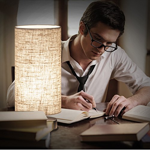 Simple and Vintage: Smooth wooden texture base with a cylinder linen fabric shade definitely gives much aesthetics to this desk lamp and makes it a perfect addition to your room.