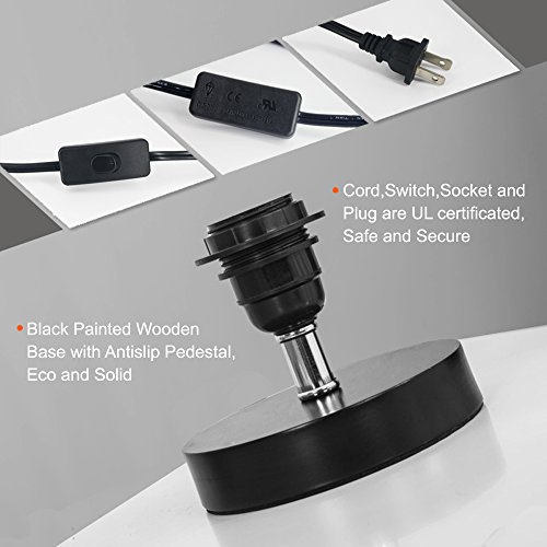 Easy Usage: the distance between the ON/OFF switch and the lamp base is about 25cm which makes it’s convenient to use. UL plug. UL Certification.(The effect of the main picture is with a warm white bulb on)