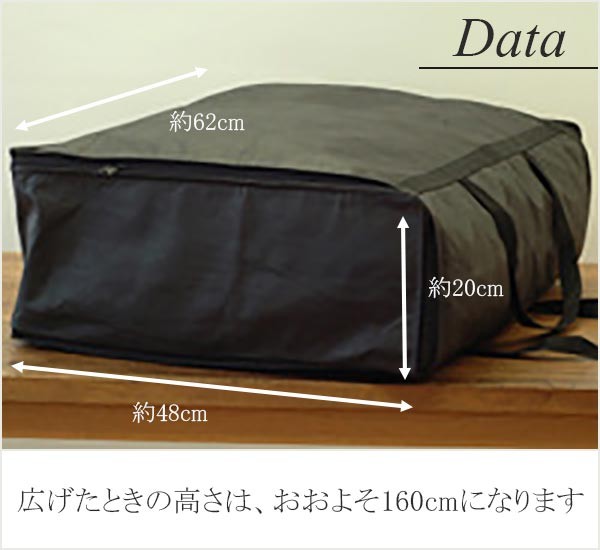 幅約62cm × 長さ約48cm × 奥行約20cm *広げたときの高さは160cmです。 |