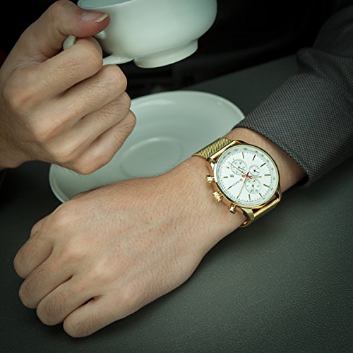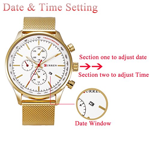 -. Title : GOHUOS Men's Business Luxury Stainless Steel Band Calendar Auto Date Analog Quartz Wrist Watch-Gold