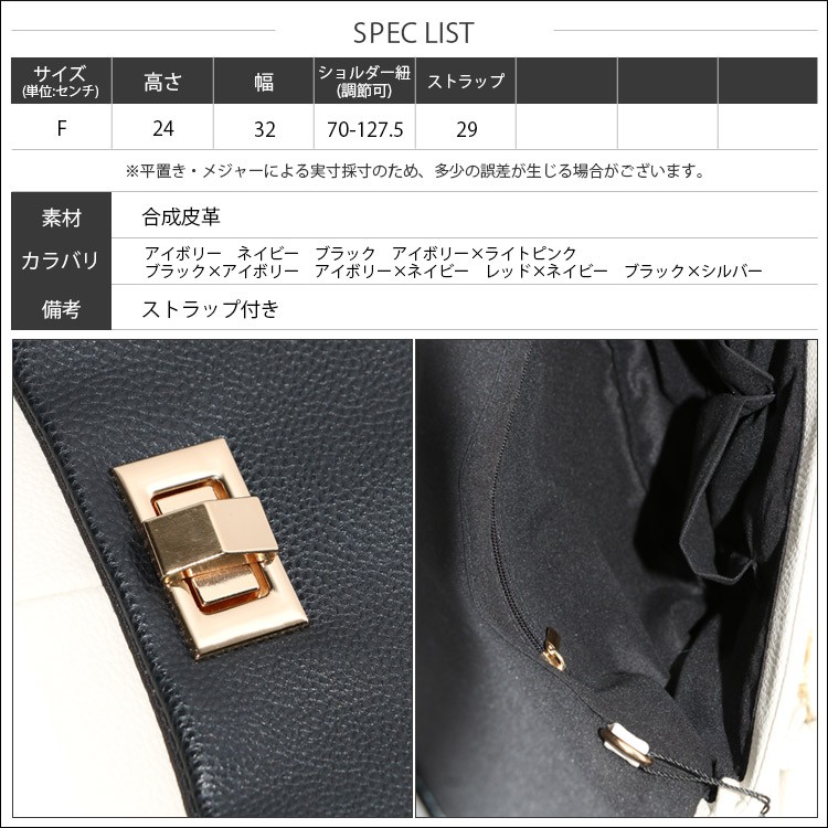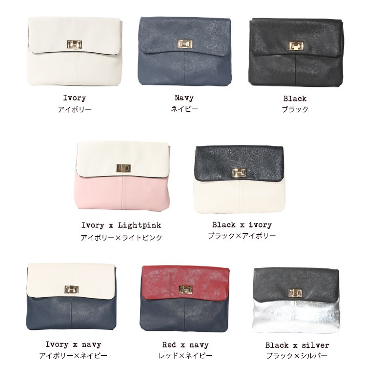 カラー:アイボリー、ネイビー、ブラック、アイボリーxライトピンク、ブラックxアイボリー、アイボリーxネイビー、レッドxネイビー、ブラックxシルバー