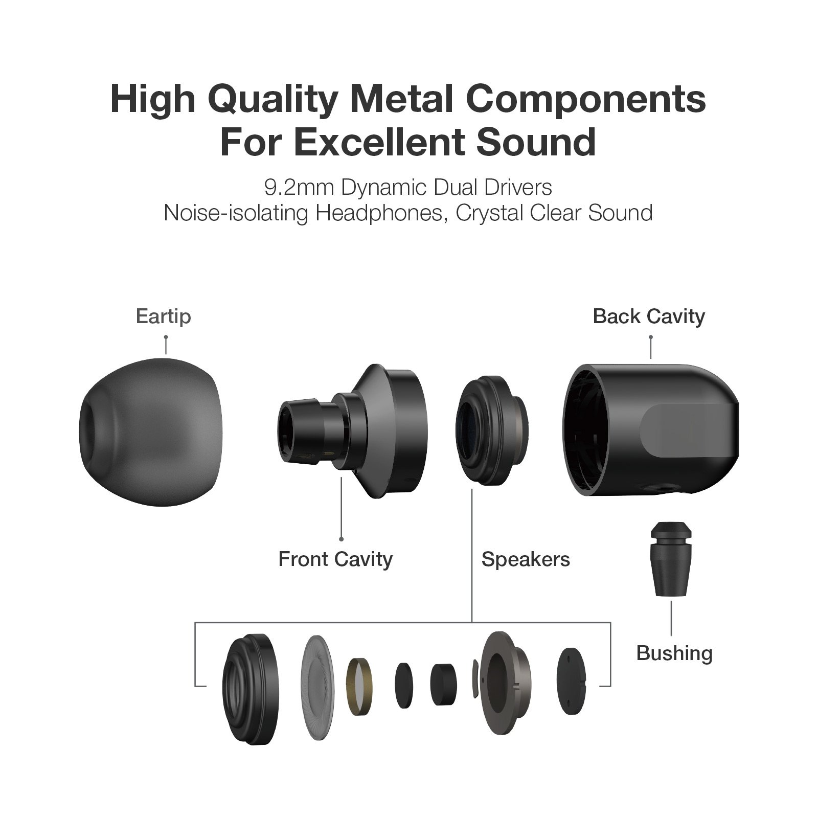 The aluminum composite reinforced housing and the 9.2 mm large diameter screwdriver reproduce the sound source faithfully with a well-balanced sound and play high sound quality sound in stereo.
