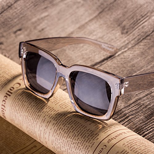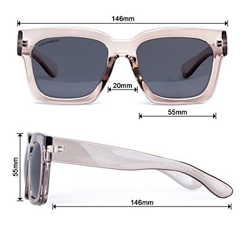 COLOSSEIN Oversized Fashion Sunglasses For Women Transparent Square Frame Glasses,FDA Standard 100%UVA/UVB Protection Mirrored