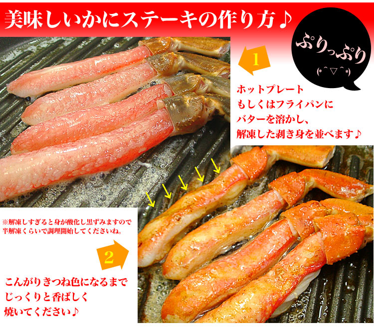 必ず火を通してから召し上がり下さい。生のカニ身は解凍状態で時間が経つと酸化し黒ずみます(黒変)