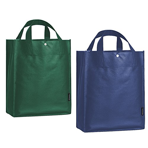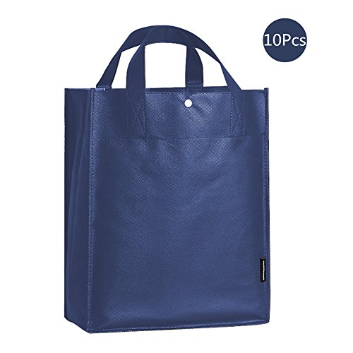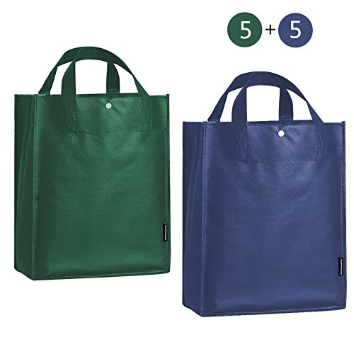 10 Packs of Grocery Bag Reusable Retail Storage Shopping Tote with Snap Button,5 Navy+5 Dark Green