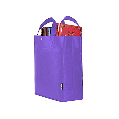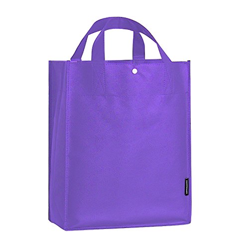 10 Packs of Grocery Bag Reusable Eco-friendly Retail Shopping Tote with Snap Button, Purple