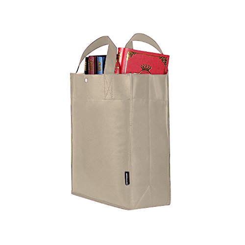 Grocery Bag Reusable Large Storage Shopping Tote with Snap Button,10 Packs Light Khaki