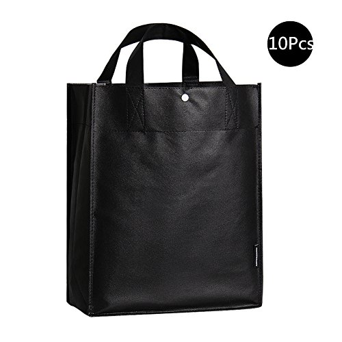 10 Packs of Grocery Bag Recycled Reinforced Handles Storage Shopping Tote Bag with Snap Button, Black