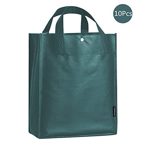 10 Packs of Grocery Bag Reusable Large Storage Shopping Tote with Snap Button, Teal