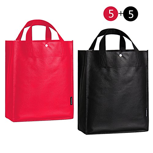 10 Packs of Grocery Bag Reusable Storage Shopping Tote with Reinforced Handles,5 Black+5 Red
