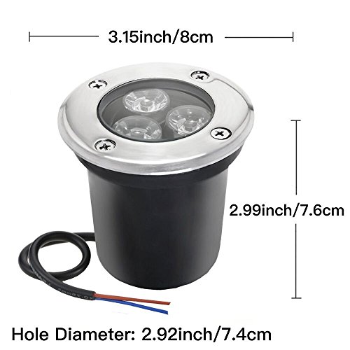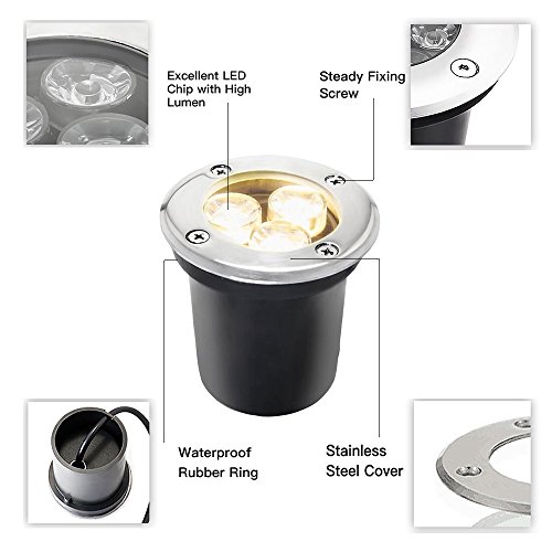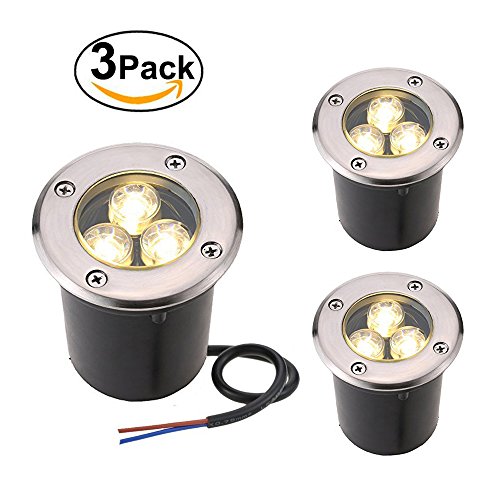 Sunriver 3W LED Underground Path Light 12V 24V Yard In-Ground Landscape Well Light Waterproof Outdoor Lamp Low Voltage for Garden, Pathways, Lawn, Driveway Decorative Lighting (3 Pack,Warm White)
