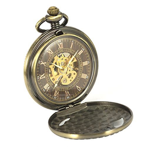 -. Title : SIBOSUN Antique Pocket Watch Automatic Mechanical 3D Locomotive Steam Train Railroad Men Skeleton Chain