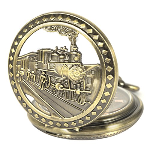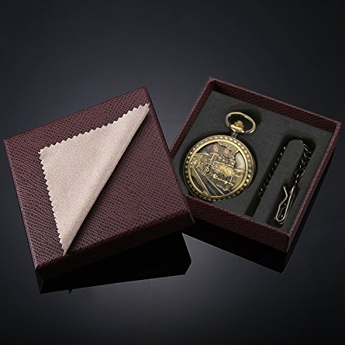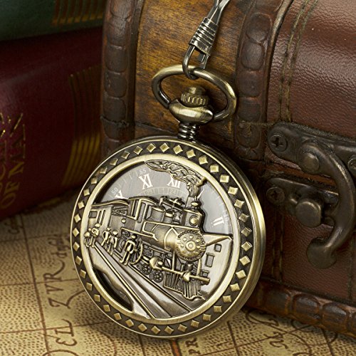 -. Feature : 1. Gleaming Appearance - Beautiful Outstanding Good Looking - Automatic Mechanical Pocket Watch 3D Bronze Steam Locomotive Train Railroad Design / 2. Historical Significance - Is The First Generation Train In The World & Brings Great Convenience For People's Production And Life / 3. Automatic Mechanical Movement - Just Take Batteries Away, Easily To Rotate The Crown Clockwise With Your Thumb And Forefinger Slowly, After About 20-30 Turns, Stop Rotating When You Feel It Is Tightened. Don't Over-wind And Damage The SP.R.Ing. / 4. Must-be Choice - Wanna Stand Out? This Is Your Watch - A Conversation Piece, A Compliments Receiver - It Really Hits The Spot / 5. Thoughtful Gift - Even Fits The Chef Or Nurse Who Is Not Allowed To Wear A Wrist Watch In The Work Place - Nice Packing Gift Box, Matching Chain, Cleaning Cloth & Manual's Instructions