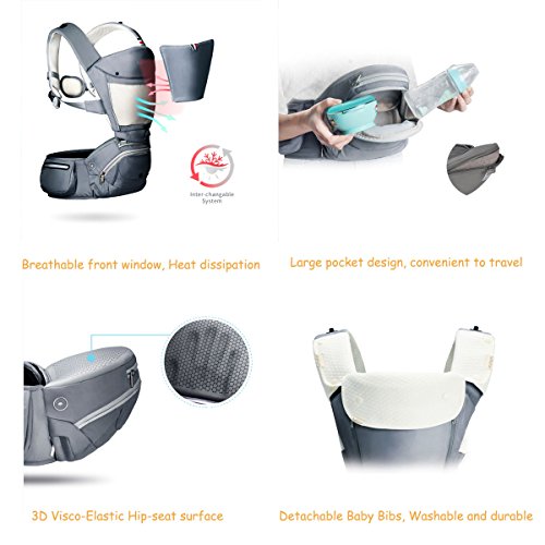 Product Description Bebamour Baby Carrier with Hip Seat for All Seasons, 6 in 1 Comfortable Safe for Infant Toddlers,Ergonomic Baby Backpack Carrier For Baby Shower Gift (Grey) 0