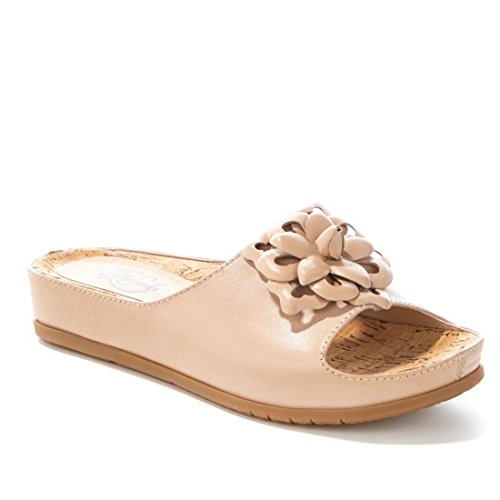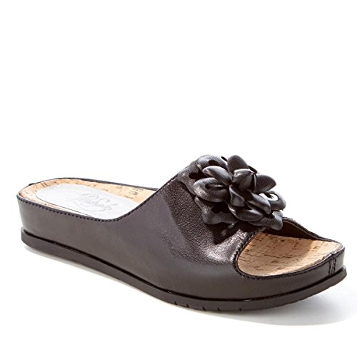 Binding : Apparel Product Description PureSole Cynthia Leather Flower Slide Sandal Step into pure bliss. Featuring a molded, contoured cork footbed with 2mm of memory foam in the heel area, this leather slide feels as delightful as it looks. The wide band features a gore insert for flexibility, and that cut flower makes it too cute to pass up! Good to Know 0